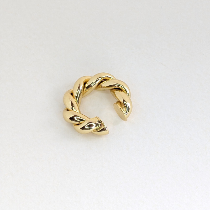 Completa tu look con este earcuff dorado decorado con una trenza detallada, que añadirá un toque único a tu estilo.